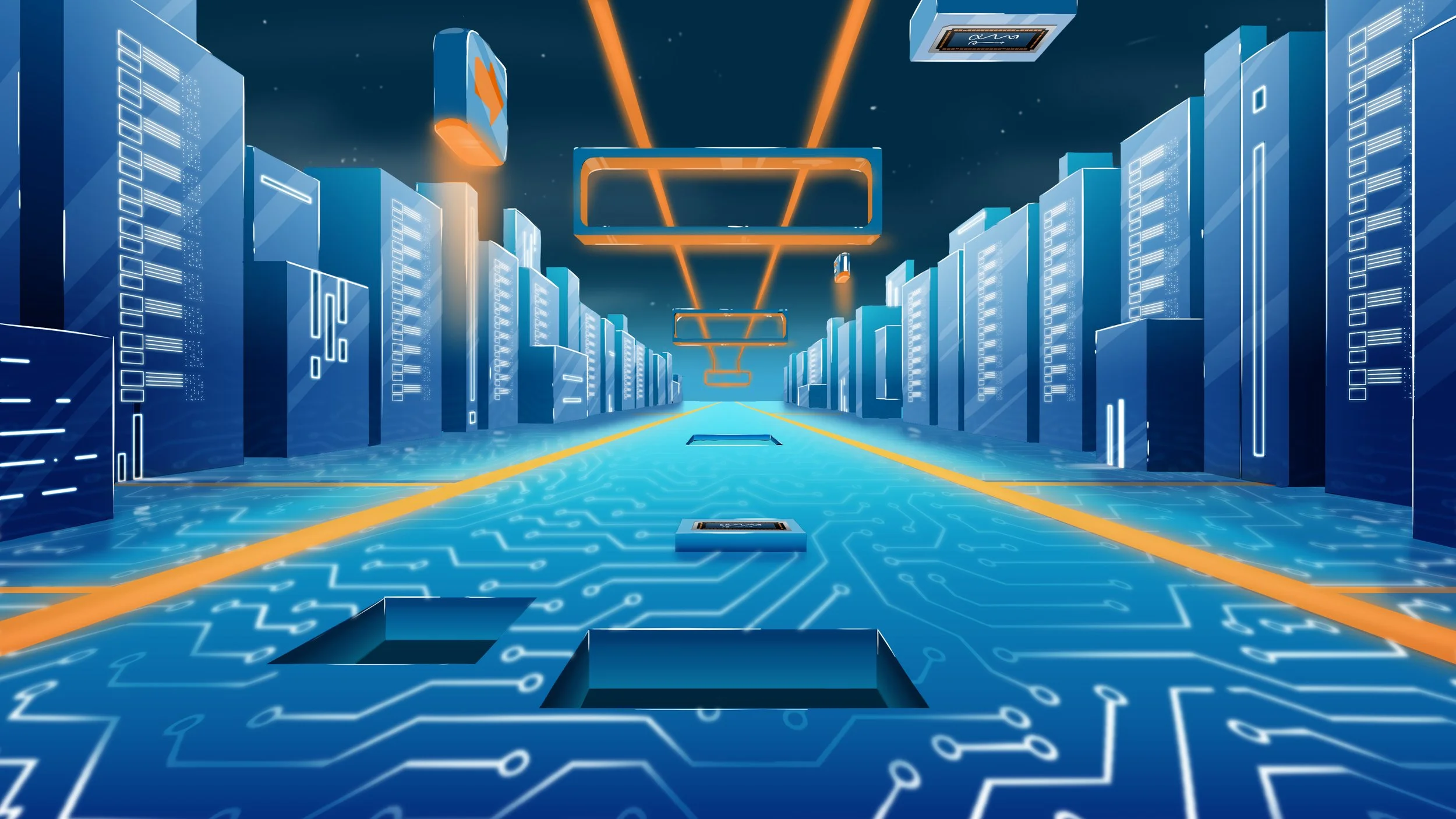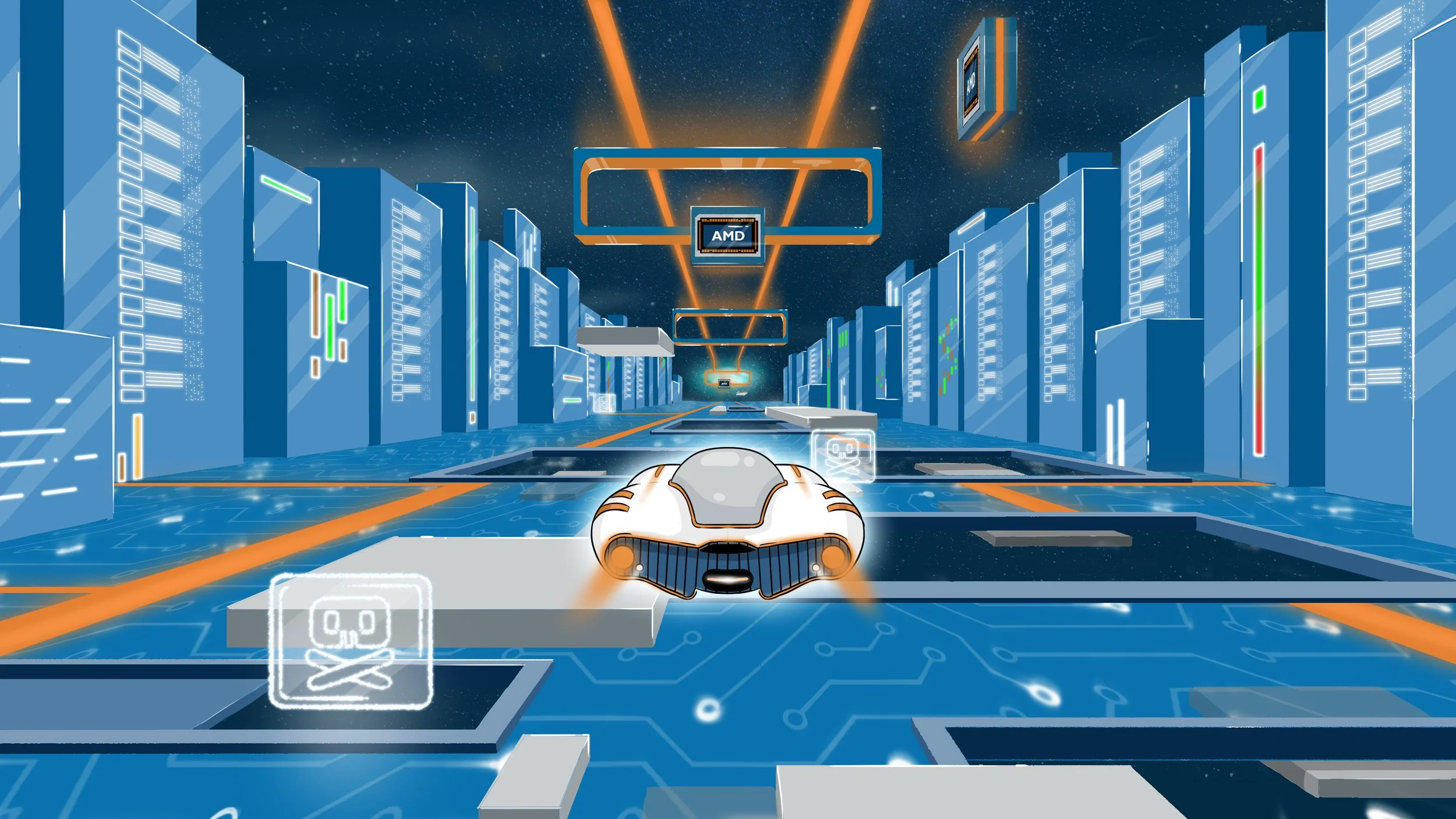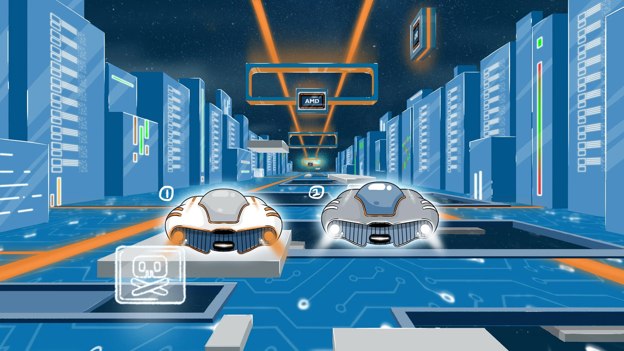Design done for animation for the Direxion Funds AMD spot. I was responsible for the Environment, background and player Design.
